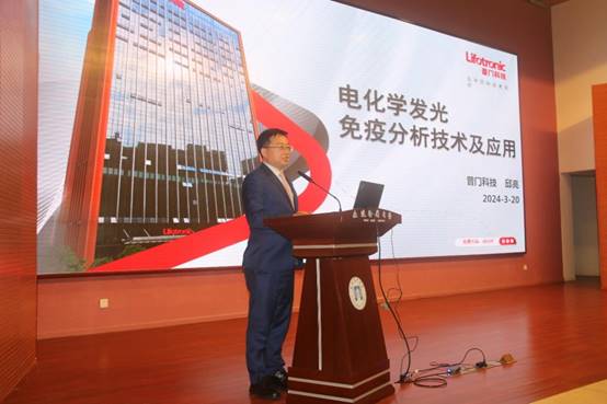 座谈会结束后,邱亮在学校图书馆学术报告厅为全校师生作了题为《电发光免疫分析技术及应用》的报告,并与师生进行了学术交流。